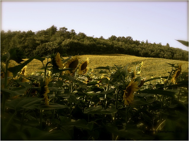 Our journey continues on the via Cassia, where we keep heading North. We will drive through San Lorenzo Nuovo, Acquapendente (the name reminds me of a Middle Earth place, literally “Bending Water”) and after about 15 minutes, we are in Tuscany. The place where we are heading to is Bagno Vignoni and it cannot be missed, you will literally fall into it! Before getting there, don’t miss the chance to look around on the way (make sure somebody else will drive for you!) The closer we get to our destination, the deeper we get into the province of Siena, and all of a sudden it will be like having in front of your eyes the real Tuscany that you got used to see through postcards, travel books and movies. Waving hills by the typical colour that characterizes the area, cypress-lined paths that lead to beautiful villas and if you really do go in June, sunflowers fields. Trust me, before getting there you will want to stop the car and take some pictures. Just make sure to pull over where it’s safe! (I thank Natalia for taking the picture below, after safely pulling over, of course)
